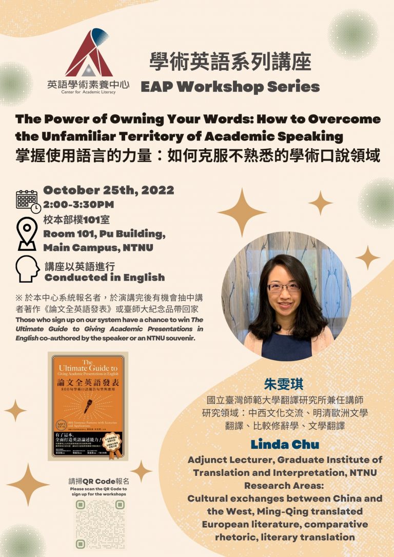 【 🍰 EMI活動精選快報 】 本週主題#英語學術素養中心學術英語系列講座#英語系線上英語聊天室#文學院跨文化英語系列講座#教學發展中心EMITA 培訓工作坊#教學發展中心英語授課知能工作坊歡迎點擊圖片查看各活動名稱、報名資訊連結喔! Post author:OBE Post published:2022-10-17